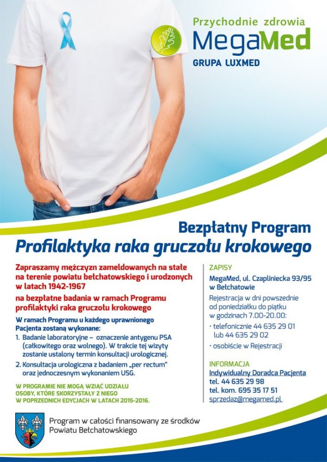 Program profilaktyki raka gruczołu krokowego dla powiatu bełchatowskiego opracowano na przełomie 2014/2015 roku, został przyjęty na trzy lata.