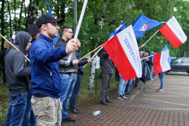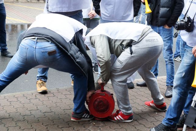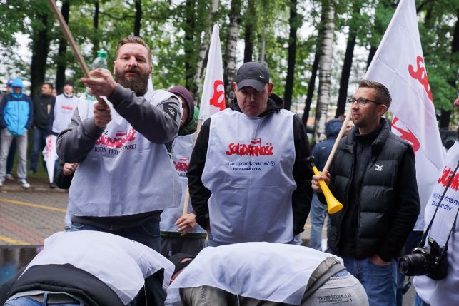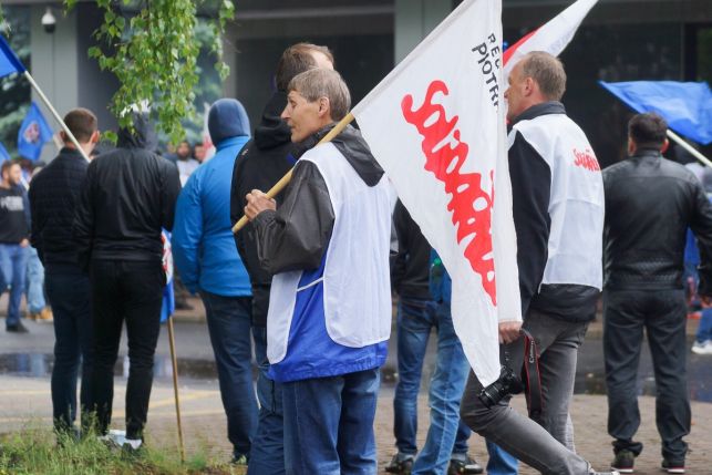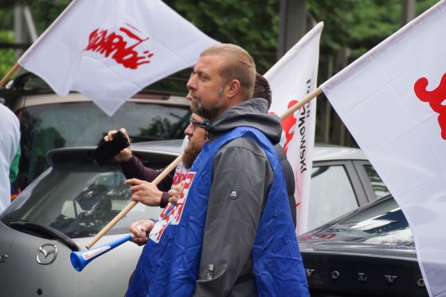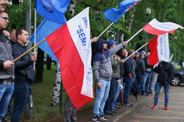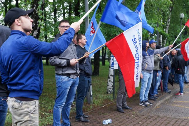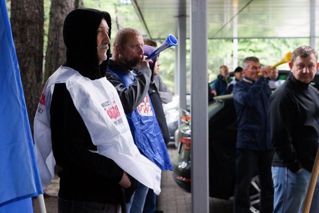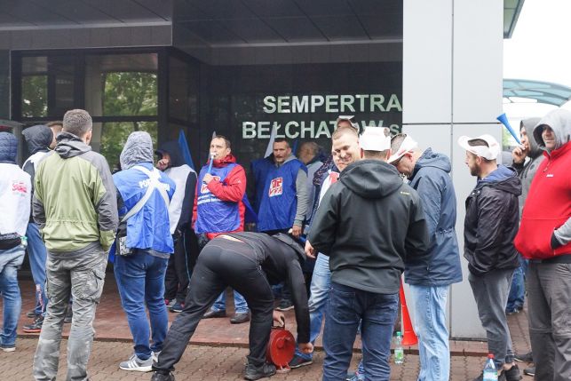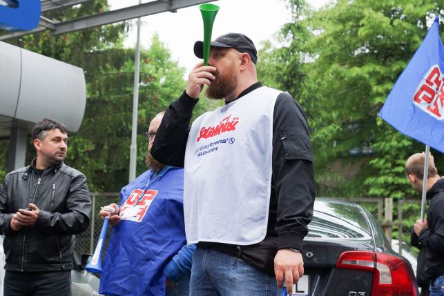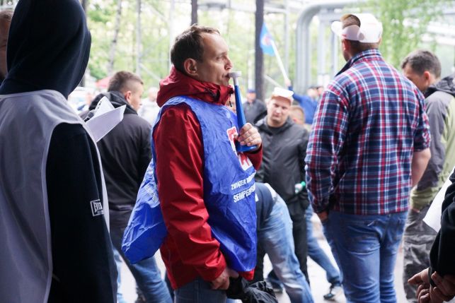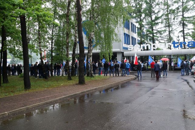 Syreny, petardy i okrzyki. Protest przed Sempertrans, pracownicy żądają podwyżek [FOTO][VIDEO]