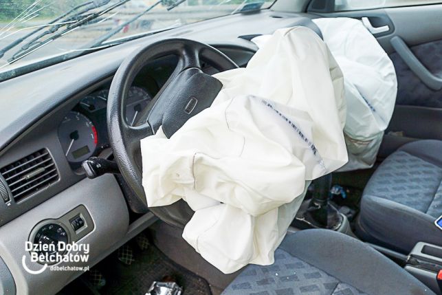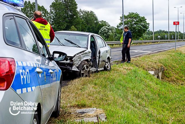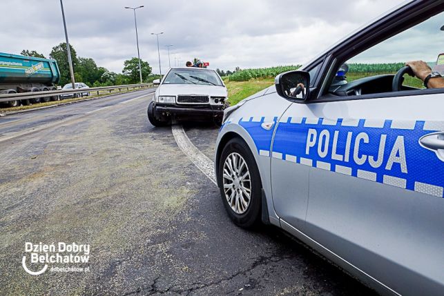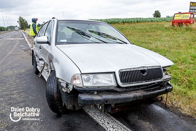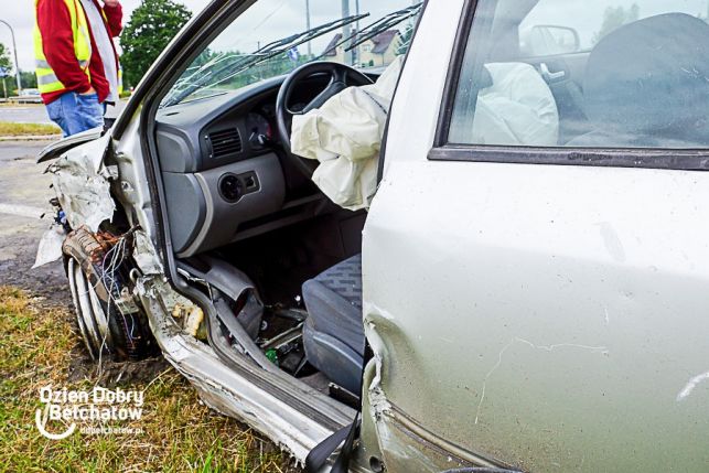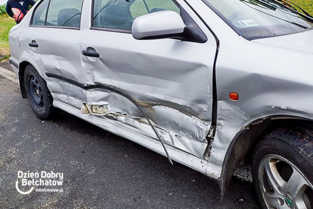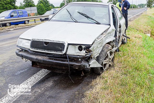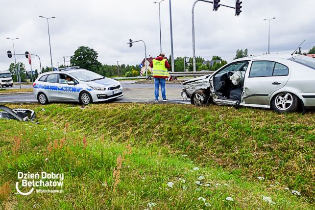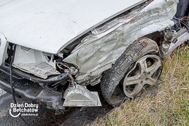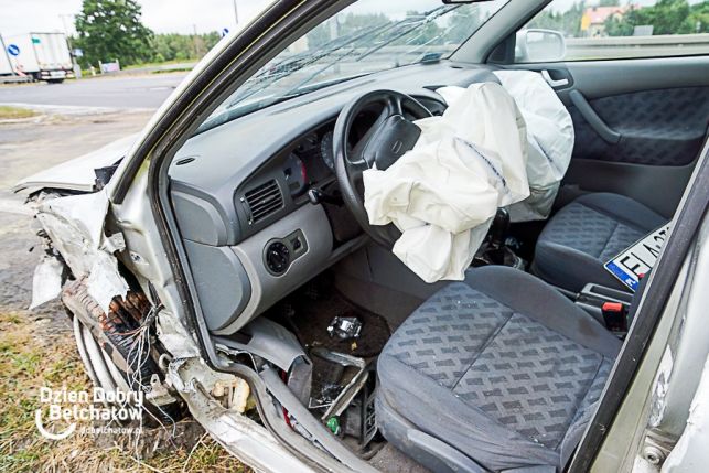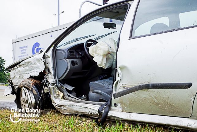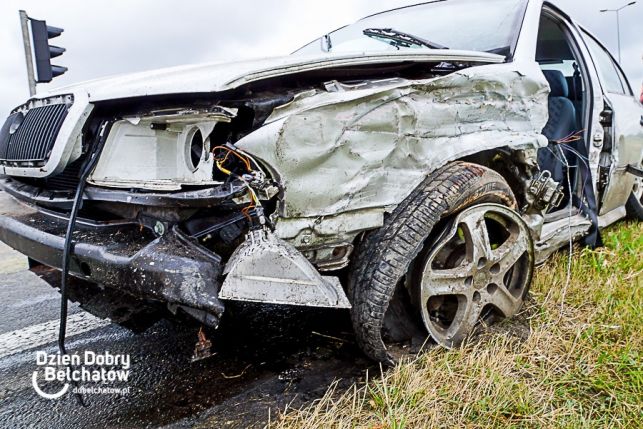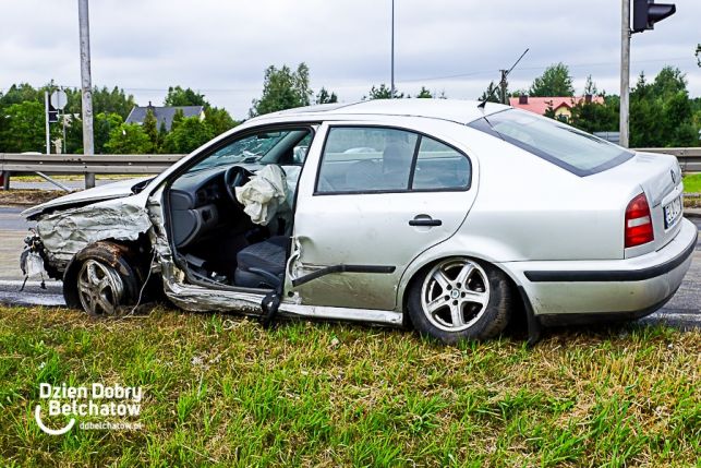 Szczerców. Zderzenie dwóch osobówek, jedna wjechała na skrzyżowanie na czerwonym świetle [FOTO]