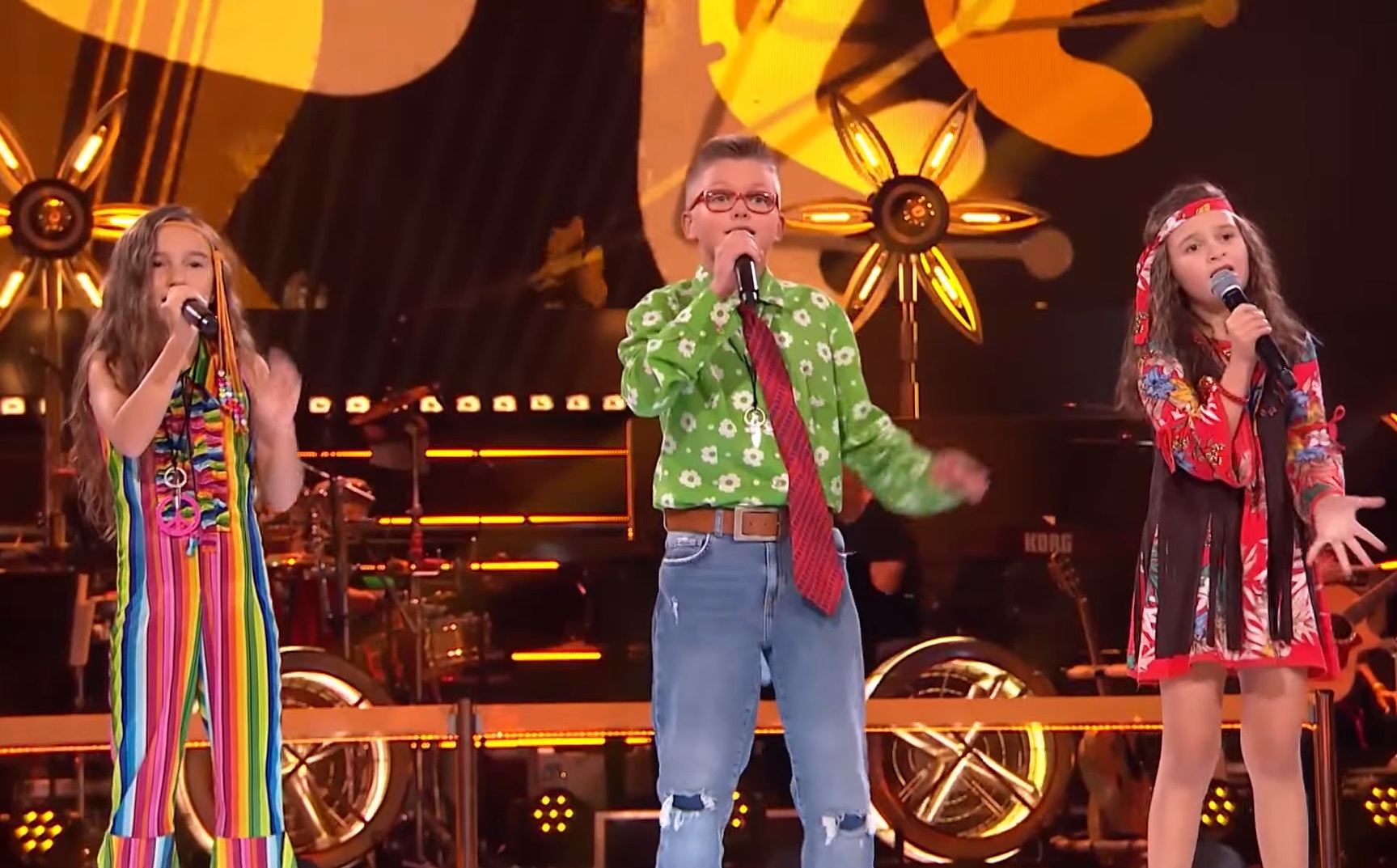 Maluchy zaśpiewały ubrane w stroje w klimacie hipisowskich "dzieci kwiatów". Występ pierwszej trójki uczestników zachwycił jurorów, którzy bili brawo i nie szczędzili pochwał.