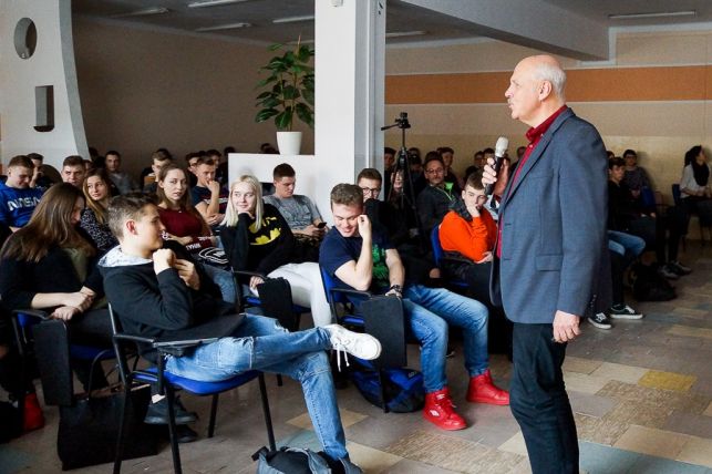 Wybór „Energetyka” na prelekcję nie był przypadkowy – to właśnie w tej szkole uczą się przyszli budowniczowie, energetycy, poza tym już kilka lat temu uruchomiono w niej kierunek technik urządzeń i systemów energetyki odnawialnej. To, jak podkreślał Zubilewicz podczas spotkania, absolwenci tych kierunków powinni mieć wysoką świadomość zarówno zmian klimatycznych z jakimi zmaga się Świat jak i najnowszych trendów w tworzeniu budynków przyjaznych środowisku. Podczas blisko dwugodzinnego spotkania Tomasz Zubilewicz w ciekawy i przystępny sposób opowiadał o zmianach klimatycznych, o tym jaki ma to wpływ na nasze środowisko i pogodę i co można zrobić, by niebezpiecznym trendom przeciwdziałać.