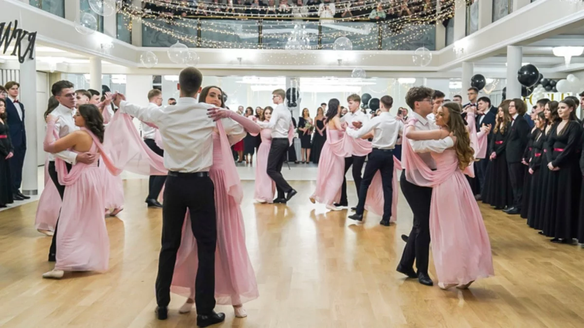 Wydarzenie rozpoczęło się od misternego poloneza. Uczniowie przygotowali układ zawierający wiele figur, a nawet podnoszenie. Uroku występowi dodały stroje, w których zaprezentowali się maturzyści. Panie miały na sobie czarne suknie, przewiązane w pasie szarfami, a panowie pokazali elegancję w garniturach. Nie był to jednak koniec niespodzianek. Maturzyści zaprezentowali przed zebranymi również specjalny pokaz tańca. Występ wywołał duże wrażenie na zaproszonych gościach, którzy nagrodzili młodzież gromkimi brawami.