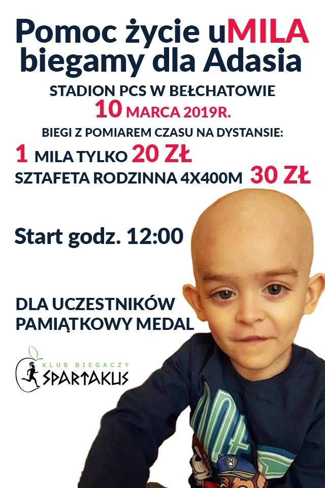 W Bełchatowie pobiegną dla chorego Adasia. Każdy może pomóc!