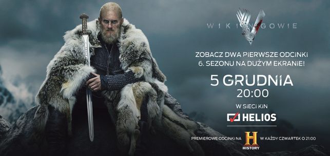 Aby otrzymać bezpłatne podwójne zaproszenie na premierowe odcinki 6. sezonu serialu Wikingowie, należy zarejestrować się pod adresem wikingowie.helios.pl, a następnie odebrać je osobiście w kasie kina wybranego podczas rejestracji.
