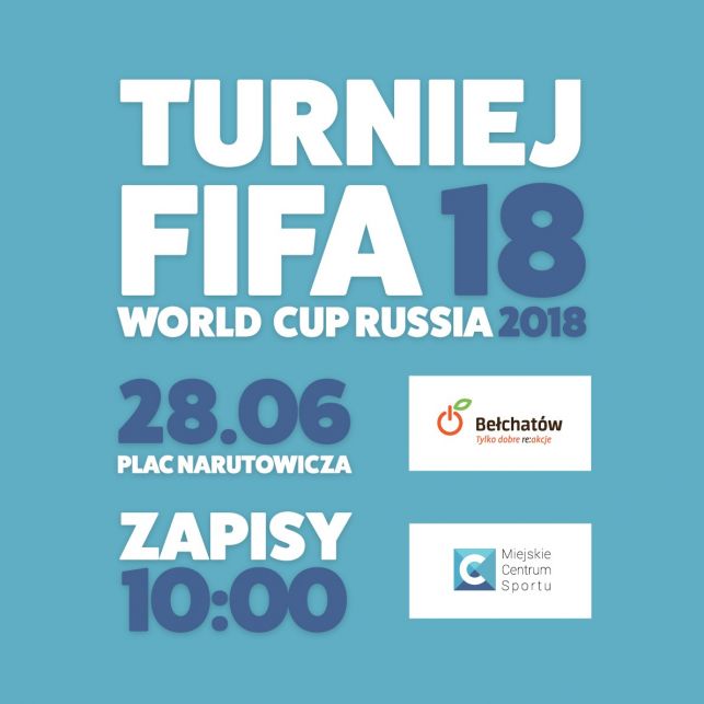 28 czerwca na placu Narutowicza, tuż przed meczem Polski z Japonią odbędzie się wyjątkowy "Turniej FIFA 18". W grze mogą wziąć udział zarówno starsi, jak i młodsi. Przewidziano dwie kategorie wiekowe: poniżej i powyżej 16 roku życia. Będą utworzone dwa zespoły, maksymalnie 16-osobowe.