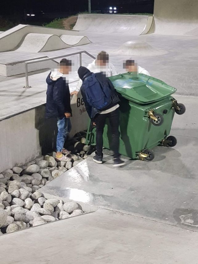 Wjechali śmietnikiem na bełchatowski skatepark. Po chwili mieli niespodziewane towarzystwo | 1 / 21 / 2 | 2 / 22 / 2