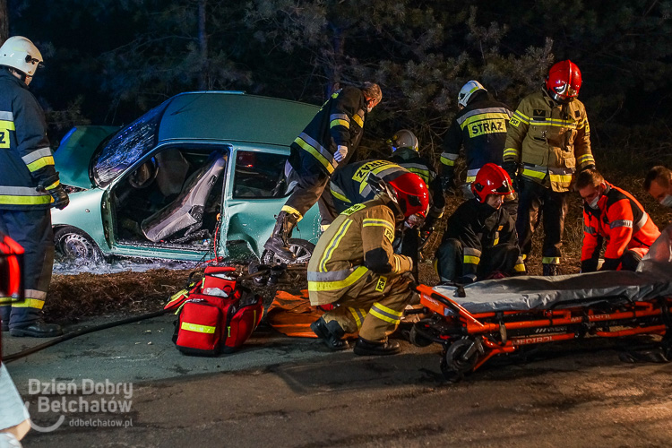 Do wypadku doszło na drodze z Kuźnicy Kaszewskiej w stronę Kaszewic. Ze wstępnych ustaleń wynika, że kierowca jadący fiatem seicento zjechał z drogi i uderzył z impetem w drzewo. Strażacy, aby wydostać rannego mężczyznę, musieli rozcinać roztrzaskane auto. Gdy udzielano mu pierwszej pomocy był przytomny. Kierowca wymagał pomocy medycznej, dlatego na miejsce wezwano karetkę pogotowia. Na miejscu pracuje kilka zastępów straży pożarnej. Wkrótce droga w okolicach Kuźnicy Kaszewskiej powinna być przejezdna.