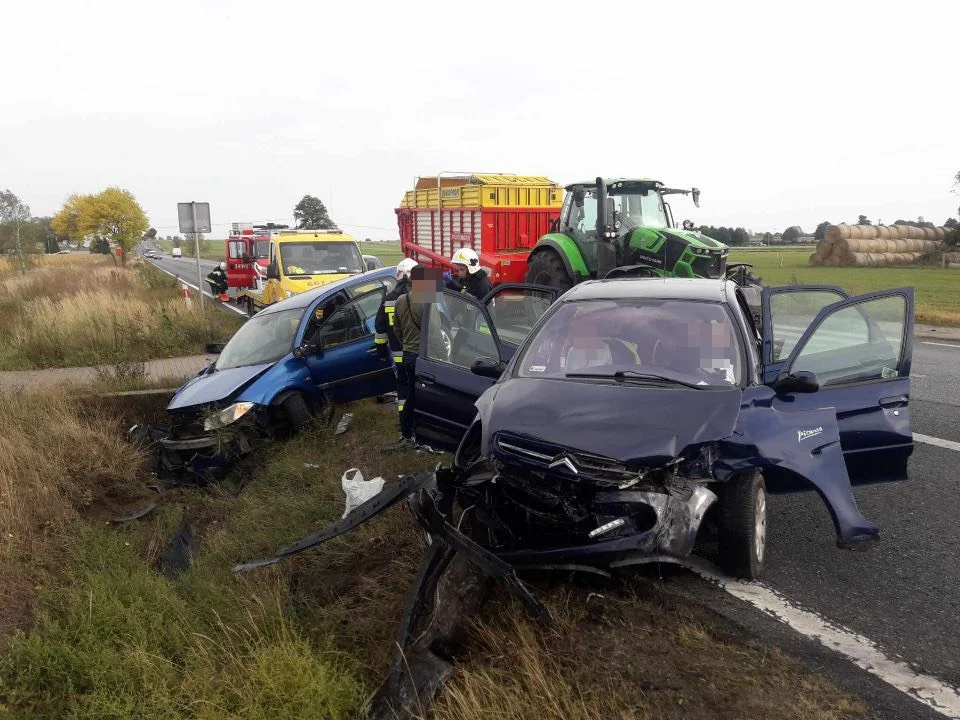 Do groźnego wypadku doszło około godz. 16:30 w miejscowości Woźniki, gm. Wola Krzysztoporska na pasie w kierunku Bełchatowa. Zderzyły się dwa samochody osobowe.