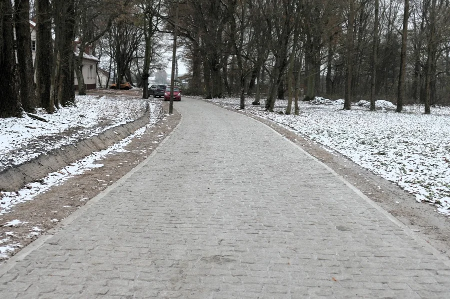 Jak poinformował urząd, prace były prowadzone na odcinku ponad 500 metrów. Fragment drogi biegnący wzdłuż zabytkowego parku został wyłożony kostką granitową. Taki był bowiem wymóg konserwatora zabytków.