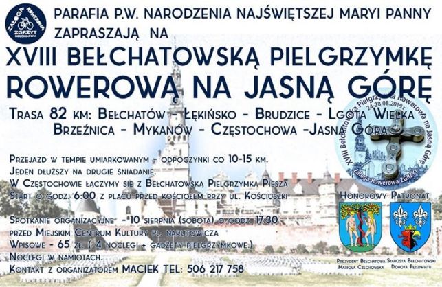 Cykliści będą mieć do pokonania 82-kilometrową trasę przez: Łękińsko, Brudzice, Lgotę Wielką, Brzeźnicę i Mykanów. Rowerzyści połączą się z wchodzącą 126. bełchatowską pieszą pielgrzymką, by wspólnie pokłonić się Jasnogórskiej Pani.