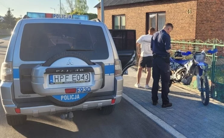 Do zdarzenia doszło na terenie gminy Kleszczów. Policjanci patrolujący teren zauważyli mężczyznę jadącego motocyklem marki Yamaha. Dostrzegli, że pojazd nie miał tablicy rejestracyjnej, a kierujący w pewnym momencie zaczął się nerwowo zachowywać. Po chwili skręcił w najbliższą posesję, aby uniknąć policyjnej kontroli.