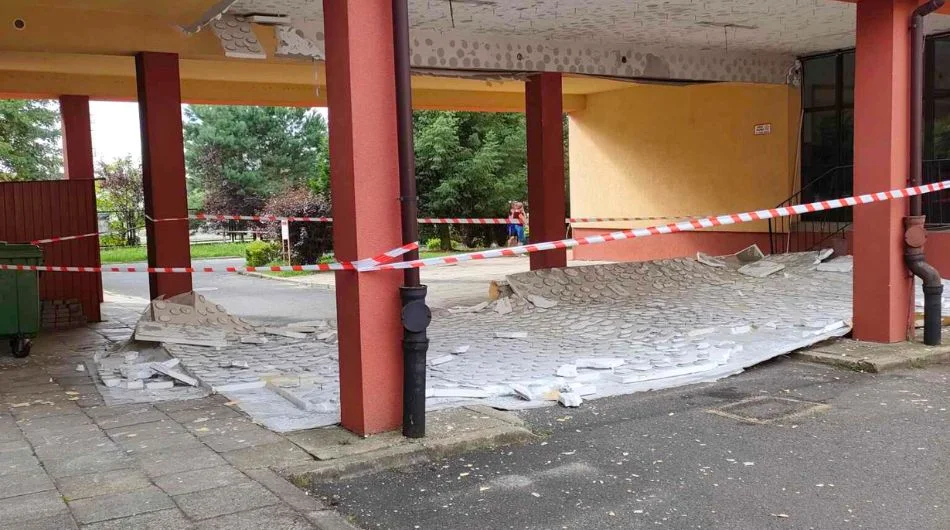 W poniedziałek, 14 sierpnia, w budynku ZSP 1, administrowanym przez bełchatowskie doszło do niebezpiecznej sytuacji. Odpadła elewacja wraz z warstwą ocieplenia stropu nad przejściem prowadzącym na atrium budynku, a dokładnie z fragmentu łącznika, który łączy szkołę z budynkiem urzędu. Szczęśliwe nikt nie odniósł obrażeń, a teren został już odgrodzony taśmami i zabezpieczony przed dostępem przechodniów.