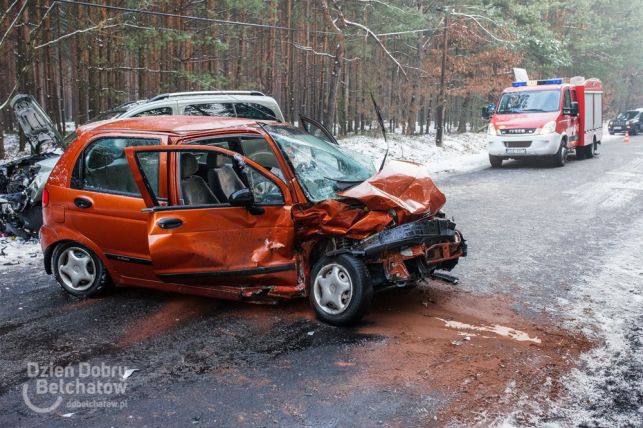 Ze wstępnych ustaleń wynika, że jadący od strony Kurnosa mężczyzna, kierując daewoo matiz wpadł w poślizg i zderzył się czołowo z citroenem nadjeżdżającym z naprzeciwka. W wypadku ucierpiała kierująca berlingo, którą odwieziono do szpitala z podejrzeniem wstrząśnienia mózgu.
