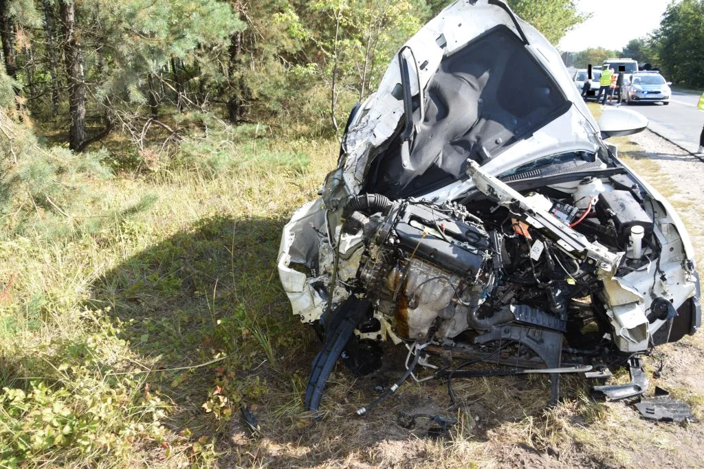 Mężczyzna jechał w kierunku Chabielic i chciał skręcić w lewo, nie ustąpił jednak pierwszeństwa jadącemu z przeciwka chevroletowi. Auto odbiło się od ciężarówki. Siła uderzenia była tak duża, że roztrzaskany chevrolet zatrzymał się dopiero na poboczu po drugiej stronie drogi. Wcześniej uderzył jeszcze w osobowego volkswagena, który jechał za MAN-em.