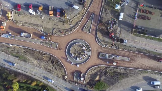 Jak informuje bełchatowski magistrat już zakończyły się prace ziemne, jeśli spojrzymy z góry – tak jak na załączonym filmie – zobaczymy, że rondo ma już swój zarys. Wykonawca – firma Rebud – już ułożył krawężniki, a utwardzanie nawierzchni dobiega ku końcowi, w najbliższych dniach pokryje ją asfalt.